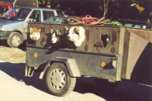 Wyruszamy w czwartek rano Andrzejowym volkswagenem busem "doppelkabine". Na pokładzie Andrzej, ja, żona Andrzeja i moja dziewczyna - kobiety mają stanowić grupę wspomagającą. No i najważniejsze osoby: 10 psów rasy-nie-rasy Alaskan Husky. Podróż do Czech przebiega bezproblemowo, celnicy tylko nieco są zdziwieni, że Polacy jadą do nich na zawody psich zaprzęgów. Wczesnym popołudniem docieramy w pobliże lotniska we Vrchlabi gdzie mamy miejsce spotkania. Wszędzie zielono... Według programu to lotnisku miał być nocny prolog... Chyba nosząc sanki na plecach...